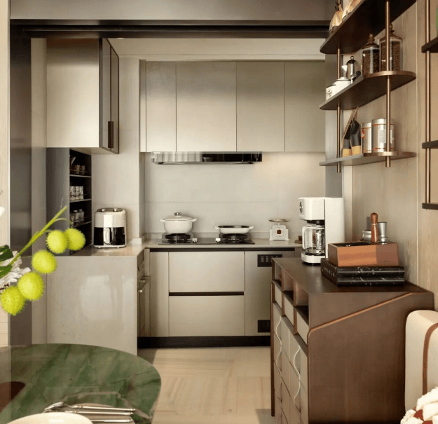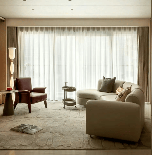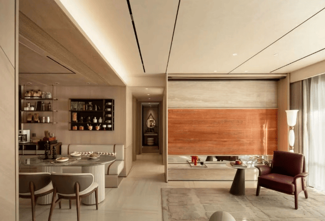 踏入架空层,首先映入眼帘的是艺术品展览区。这里柔和的米色调与木质材质相互搭配,营造出静谧而包容的氛围。在繁忙的工作之余,业主们可以漫步于此,欣赏各类艺术作品,感受艺术的熏陶,放松身心。不管是对艺术有着浓厚兴趣的年轻人,还是热爱文化生活的老年人,都能在这里找到心灵的慰藉。