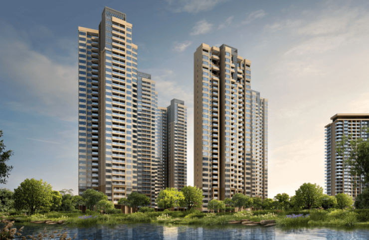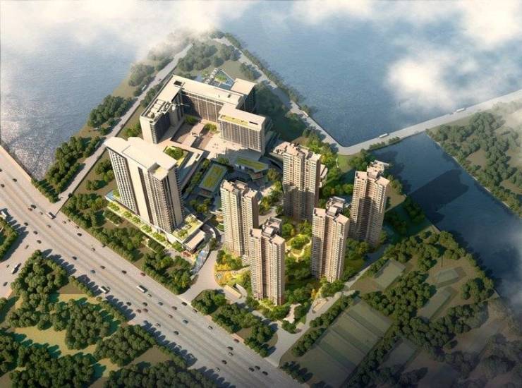 建筑规划:小区建筑类型为高层住宅,1 栋 31 层,两梯三户;2/3/4 栋 32 层,两梯四户;5 栋 30 层,两梯三户。二期采用庭院分散式布局,各栋南北相互错开,保证每户朝向与视野绝佳。