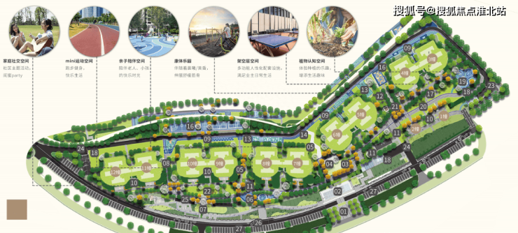 园林以 “现代活力” 为主题,入口迎宾水景搭配艺术雕塑,中央草坪区设露天剧场。儿童区以自然元素设计攀爬网、沙坑,青年健身区配置智能器械,长者休憩区布置棋艺亭廊。架空层打造共享书吧、四点半课堂,屋顶花园设星空观景台,营造 “小而精” 的度假式社区体验。