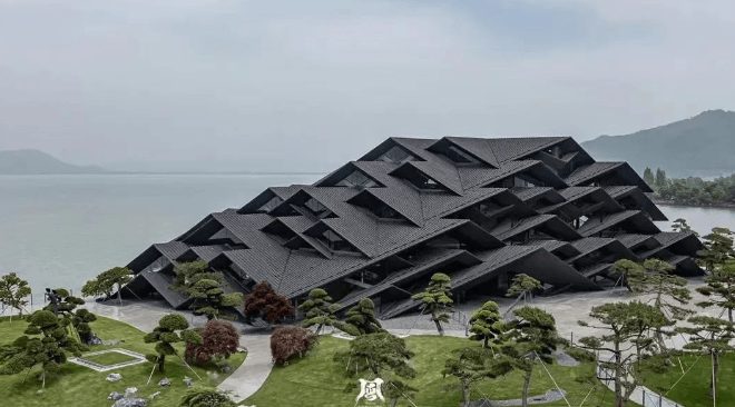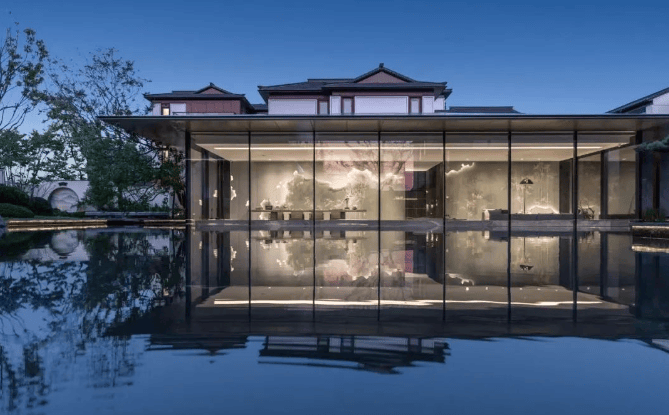 建筑设计:整体采用新中式建筑形态,以宋代传奇名画《西园雅集图》为设计蓝本,借鉴卡洛・斯卡帕的设计手法。合院入园区域打造三进院落、四重景观、双中央水院与亭台水榭等当代江南名园胜景,尽显礼制家仪。