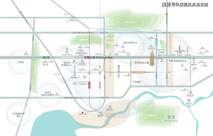 六大枢纽:快速连通福田高铁站、罗湖火车站、深圳北站、罗湖口岸、皇岗口岸、福田口岸;