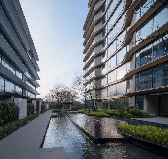 小区配套:采用全玻璃幕墙 + 铝板外立面,配备双会所、恒温泳池。装修标准高,含杜拉维特卫浴、西门子智能家居等。建筑采用 45° 旋转造型和 2.4 米超宽幅幕墙设计,荣获 LEED 金级及国家绿色建筑二星认证。