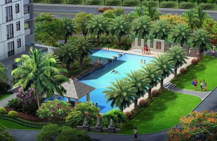 外部无缝衔接南渡江滨江带状公园,步行可达江边步道、绿地