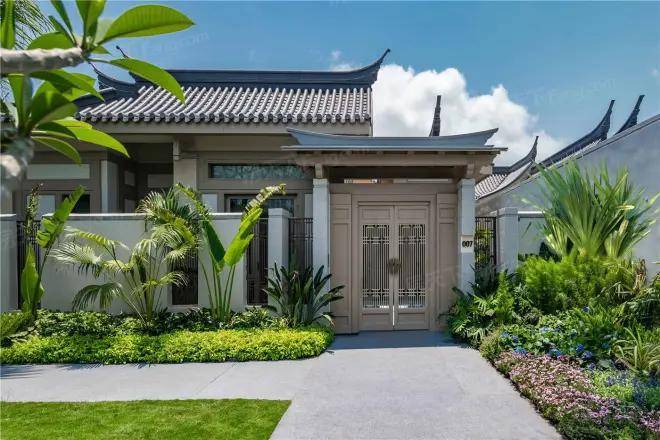 建筑风格:汲取中国传统建筑精华,融合悬山顶、庑殿顶等形制,屋顶飞檐四角翘伸,巧用中式传统元素如屋顶木架构、悬鱼等进行点缀,体现中国传统文化底蕴。