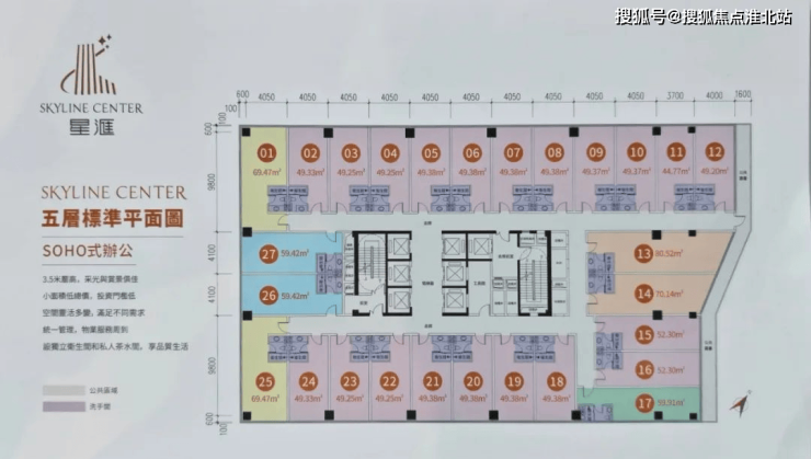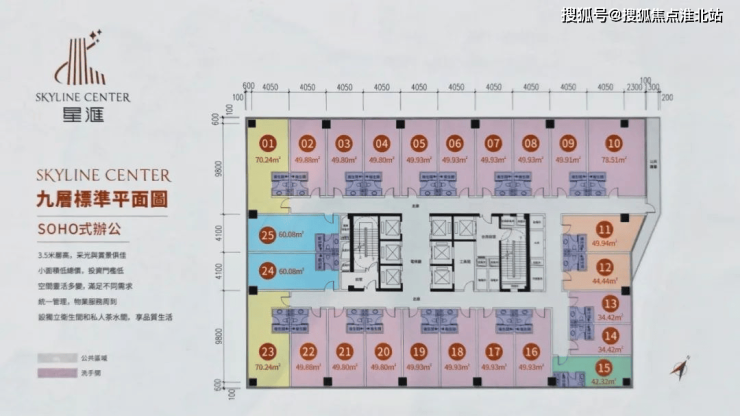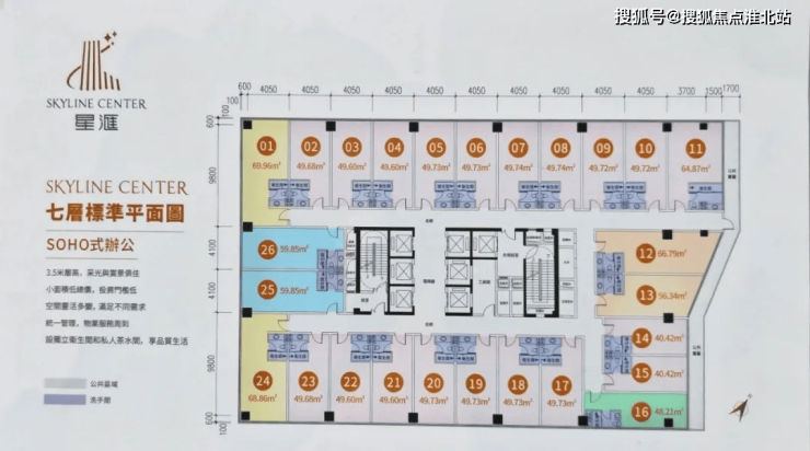 首推建面约49㎡SOHO酒店式辦公,自带獨立街生間,享獨立入戶大堂及專用電梯,集辦公、休、自用和出租等多元化功能於一體。