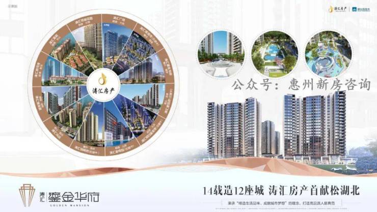 19万方生活大城,擎动莞惠新生活。涛汇鎏金华府,是涛汇地产首进龙溪新城的鎏金匠作,19万平莞惠双城首站大盘,致献湾区全新人居标杆。项目点状式布局,由12栋臻品建筑排布组成,配有近2万方九境园林及全龄配套,为莞惠城市新贵打造精粹品质新生活。