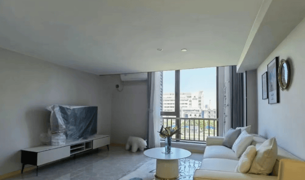 装修风格:装修风格偏向 “轻法式” 与 “极简风” 的融合,裸露的钢结构被白色乳胶漆包裹,搭配原木色地板与浅灰色墙面,营造出轻盈通透的基调,同时大面积落地窗最大限度引入自然光。