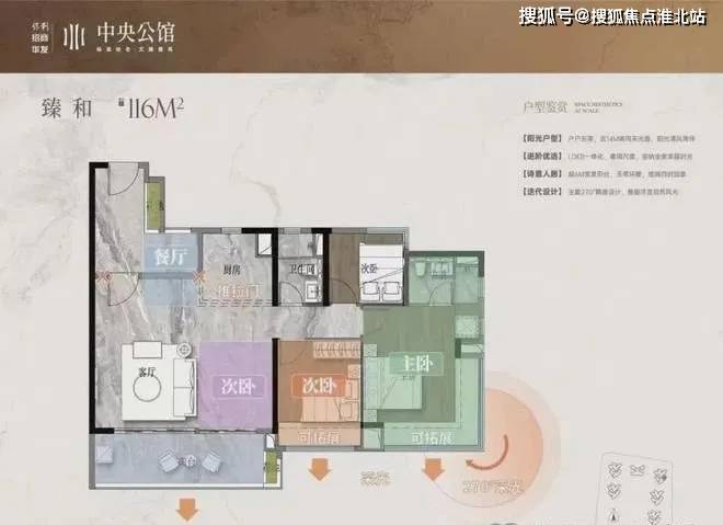 建面116平3+1房,LDKB一体化,约14米的南向采光面,还有6米的宽景阳台,视野和采光都非常好。