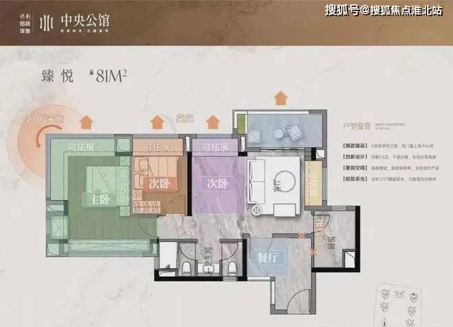 建面81平三房,主卧做到了南北对流设计,客厅预留了飘窗采光和通风都非常好。