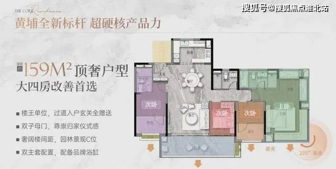 建面158平,五开间朝南,约17米南向采光面,约7.7米宽景阳台而且该户型位于项目C位视野非常好。