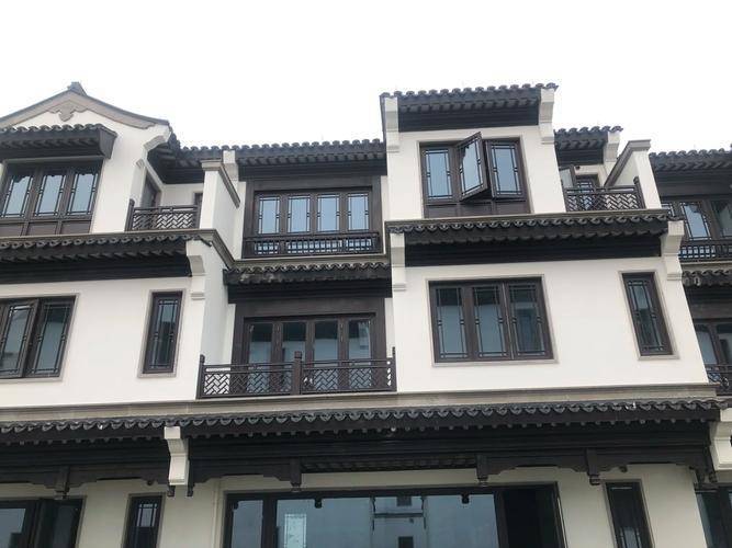 建筑特色:建筑风格为纯中式合院,采用全石材干挂立面,搭配仿古砖与灰瓦,定制门窗则采用断桥铝加双层中空玻璃材质。以 216-328㎡的传世合院为载体,复刻 “前庭后院、四水归堂” 的传统格局,采用三进院落设计,门廊、影壁、月洞门等暗合 “福、禄、寿” 等传统寓意。