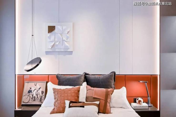 主卧或长辈房以简奢温柔为调,木纹地板与纯净的墙面,通过墙缝线条与氛围灯光营造出层次。再根据房间主人的审美与喜好,挑选装饰性的画与摆件,将鲜明的个性与喜好,以低调细腻的方式介入空间。