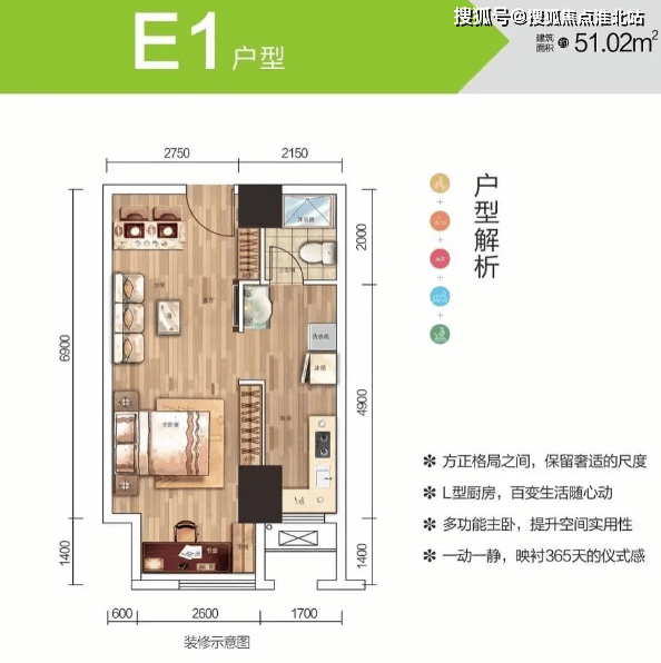 产品类型:主要在售 35.15-51.02㎡的一居室。