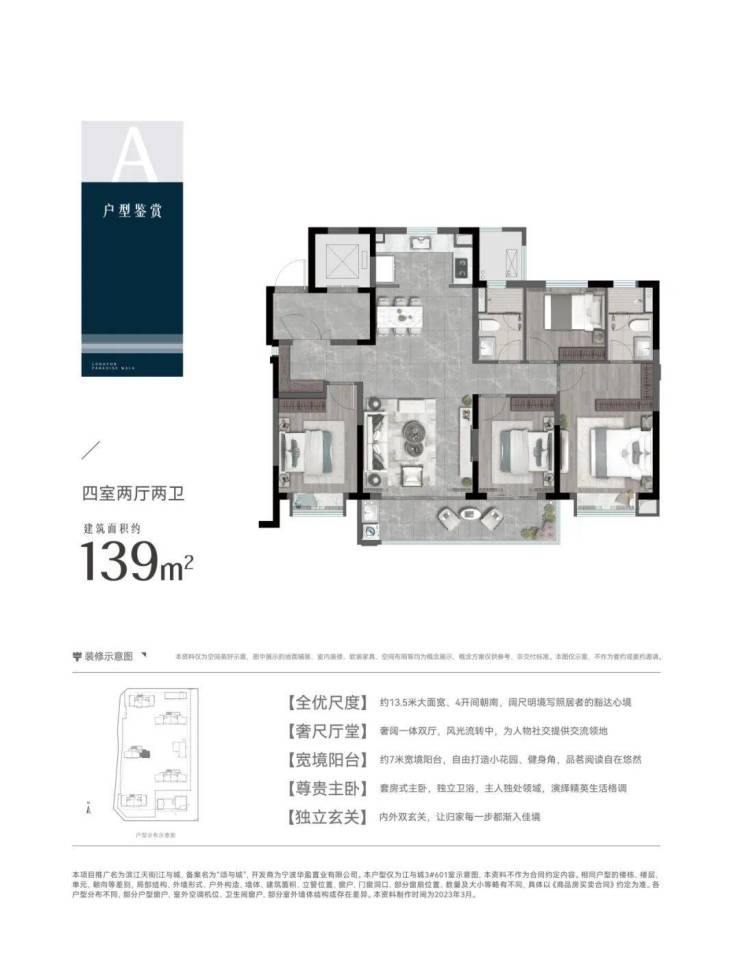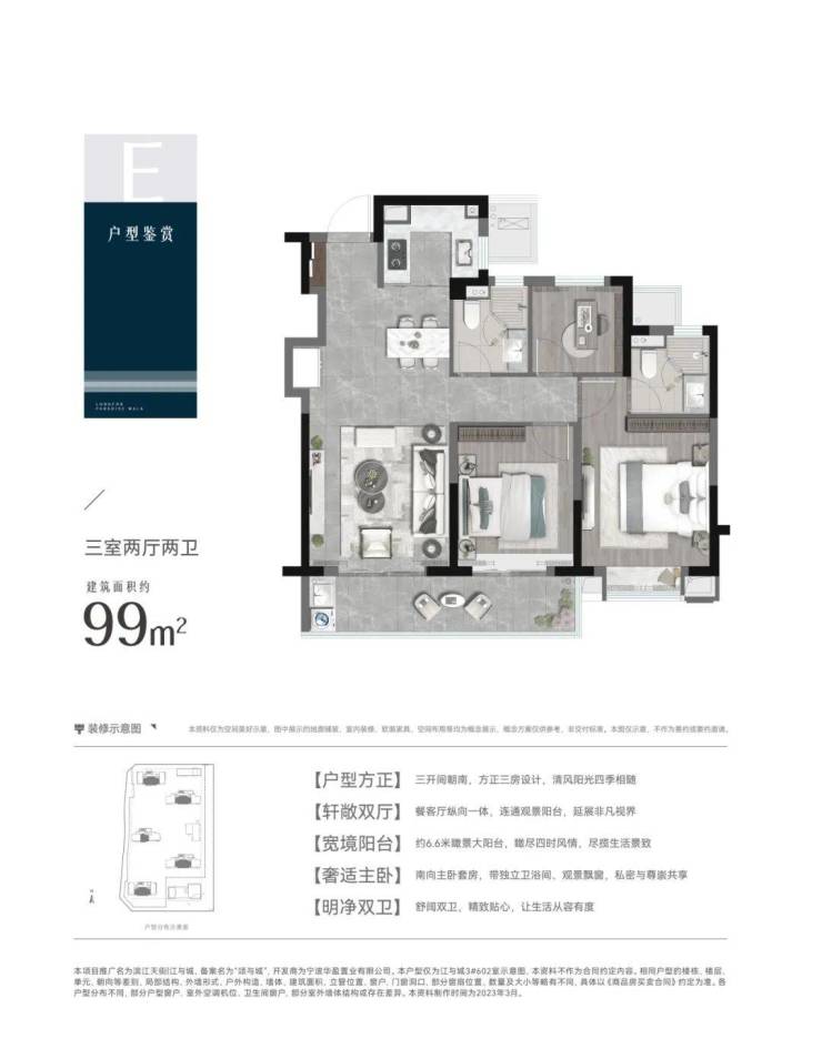 滨江天街|江与城,外揽千年甬江,内拥一线水系,由总建16万方的宁波第三座天街繁华领衔,臻造建筑面积约99-139㎡精奢美宅,上演当代都会潮流生活。