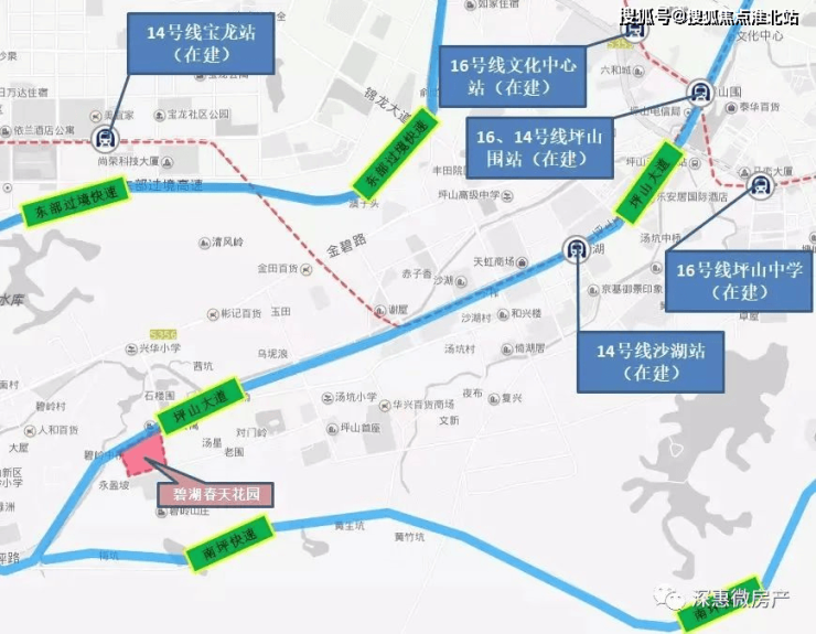 临近地铁14号快速线(在建,预计2022年开通)宝龙站及坪环西站,临近16号线(在建)坪山围站,19号线31号线(规划中),未来地铁开通运营碧湖春天的交通便捷性将大大提升。