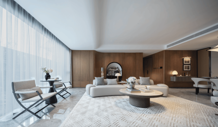 约6.7m阔绰大横厅与约7.3米全景阳台连通,构筑家庭社交中心,拥有大平层级的奢适享受。逢年过节为家族聚会提供场所,窗外风和景明,窗内阖家团圆,将情景交融的美好人居画卷透亮给世界。