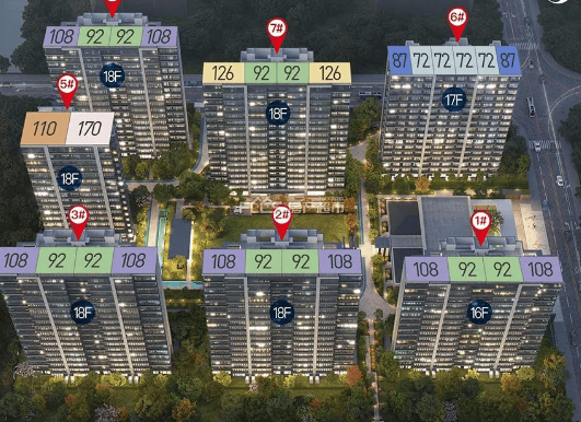主力户型:面积涵盖 72-170㎡,有二居室、三居室、四居室等多种户型,主力户型为 72㎡、87㎡、92㎡、108㎡、110㎡、126㎡、170㎡。
