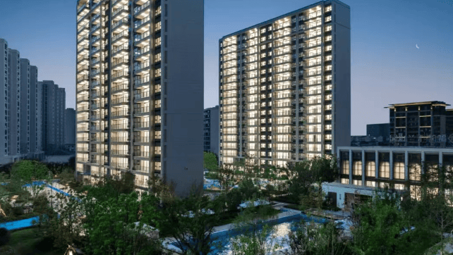 建筑设计:从法式新古典精神中汲取对称、庄重与华美,再植入东方生活传统与习惯,收敛了以往强烈的法式古典立面风格,取而代之的是饱和度更低的浅黄立面,糅合高级灰元素,视觉上更具现代感。