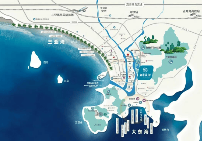 项目地处三亚城市文化起源地鹿回头山脚下,紧邻三亚中央商务区,周边交通便利,距离三亚高铁站约20分钟车程,三亚凤凰国际机场约30分钟车程,驾车7分钟可达大东海滨海浴场,10分钟可达三亚湾。项目周边配套完善,涵盖商业、医疗、教育、休闲等资源。