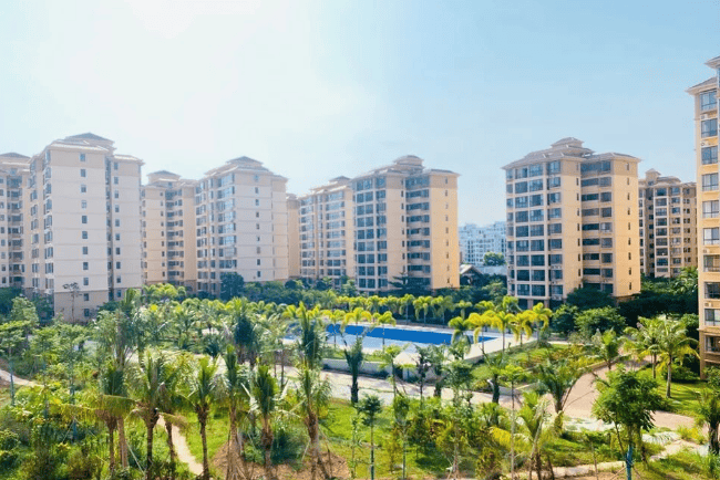 配套设施:小区内有 5 万㎡热带风情中央公园、经典养生会所和养生商业街,养生会所配有棋牌室、阅览室、健身房、乒乓球室、桌球室等。周边距海 2.5km,有十分钟生活圈,医院、银行、超市、菜市场等配套齐全。