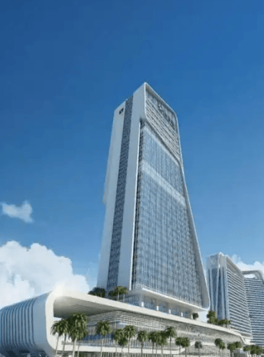 建筑构成:4 栋海景住宅、1 栋 215 米帆船造型写字楼、洲际酒店及滨海商业
