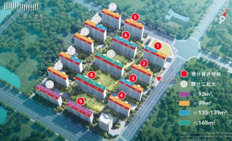 可售商品房计划分两批次入市,预计首开建面约93-165㎡3-4房,共计449套;其中建面约93㎡精装或毛坯交付、建面约99㎡精装交付,约135-139㎡、165㎡毛坯交付!