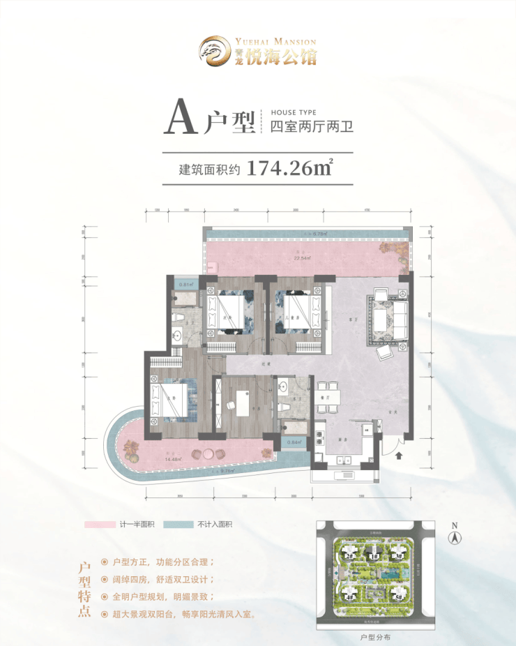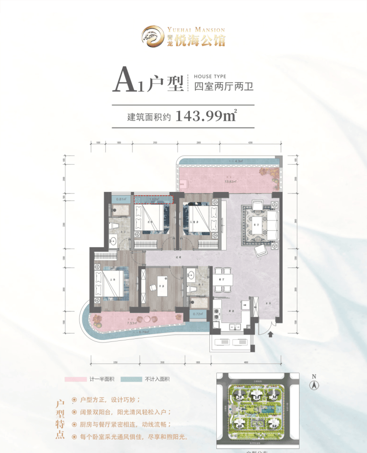 A1户型 建面约143.99㎡ 四房两厅两卫