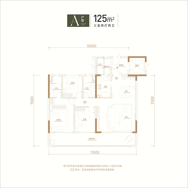 两者间最大的区别就在于A户型的南向观景阳台宽约11.5米,尺度非常强,这可是150平以上甚至200平以上户型才会有的空间。