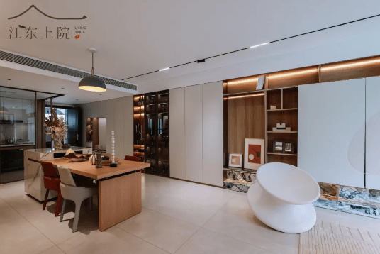 户型设计:全屋无主灯设计,LDKB一体化宽奢会客厅,主卧套房配备独立衣帽间和干湿分离卫浴,部分户型阳台面积达19㎡。