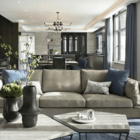 自然美学:以“临水而居”为理念,融入水波、光影等元素,打造开阔通透的空间,最大化引入自然景观。