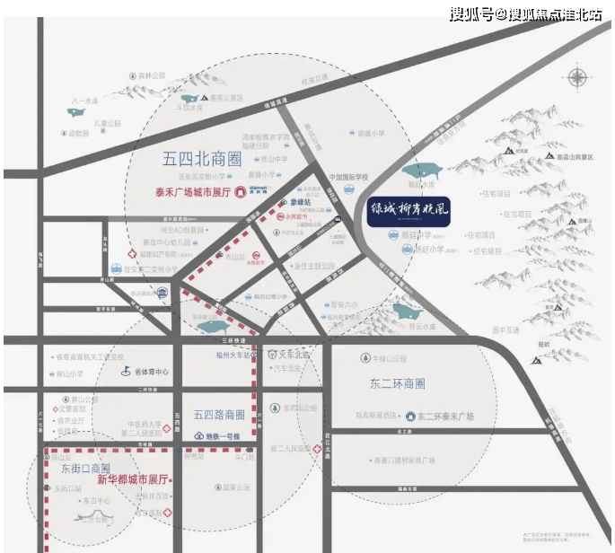 绿城柳岸晓风坐落于福州五四北泉头板块,地理环境优越,交通便捷,东瞰杨庭水库,北临未来北二通道,距离东二环商圈车程只需5分钟,距离地铁口秀峰站约2公里,10分钟可达东街口商圈;区域内还有五四北泰禾广场、中加国际学校、晋安实验小学、象峰中学、规划中的杨庭中学和福建省妇产医院、森林公园、莲花山和观音山风景区等商业、教育、医疗和公园资源,配套丰富,是福州真正宜居的后花园。