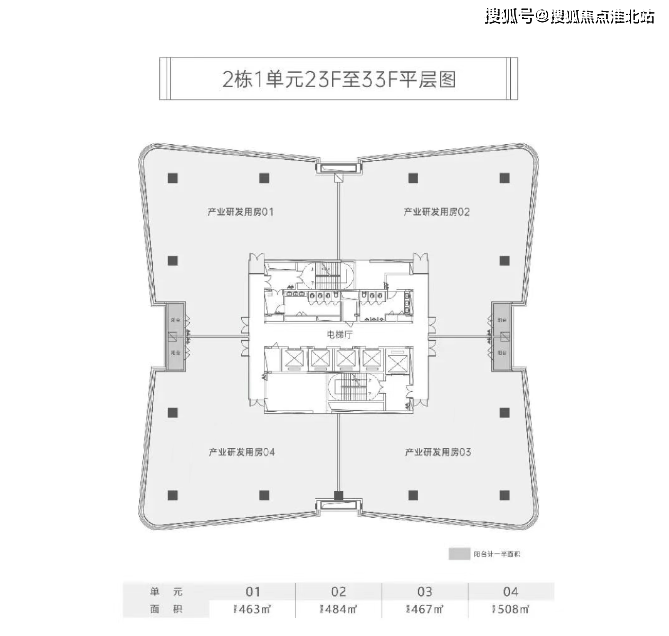 办公空间:办公整体可售比不超过 30%,其中 2-1 单元可散售。4 栋超高层研发办公楼,层高 4.2 米,使用率达 75%,9 梯 4 户高效配置,单户面积 461-508㎡,整栋可售面积 1922㎡,满足企业总部、中试实验、研发中心等多元需求。
