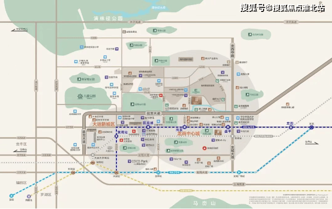 中学:初中学区划分在龙岗教科院附属实验学校(创新学校)初中部。在项目西北侧 300 米还有规划 1 所九年制公办学校,目前暂未动工。