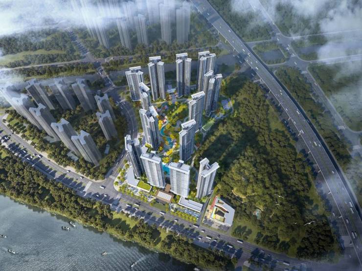 社区配套约 6.7 万㎡滨水园林、下沉式潮奢会所、中心水景、滨江步道、全龄儿童游乐区、老年健身区及私享山体公园。