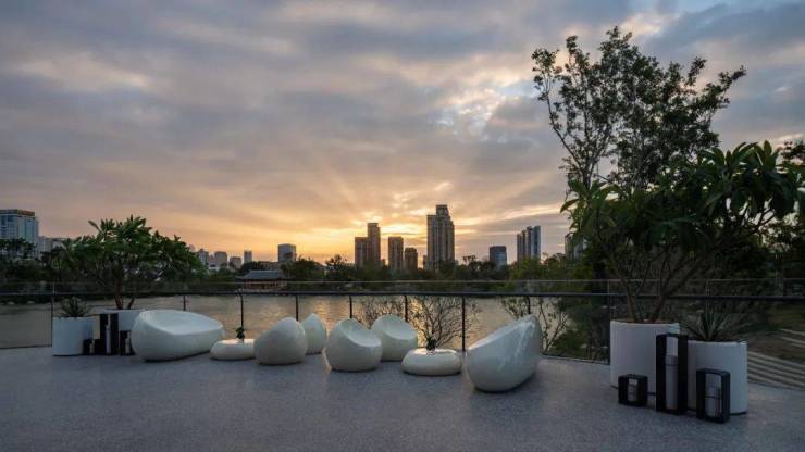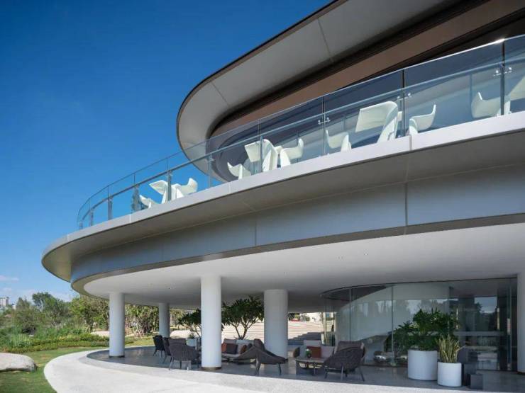 户外休闲区灵动曼妙的艺术品家具,以白色为主色调,给人一种简洁明朗的视觉感受。流线型设计营造出流水般的画面层次感,为空间注入大自然的灵魂。