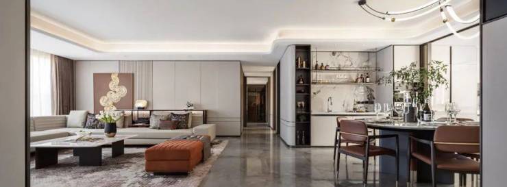 软装设计依循居者独特的空间审美,将统领时尚界、艺术界的「都会隐奢艺术风」搬入家中,让一方有限的空间,呈现隐奢风、酒店式、艺术感完美融合的超前生活理念。