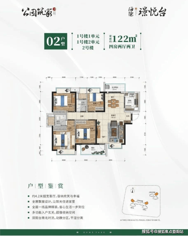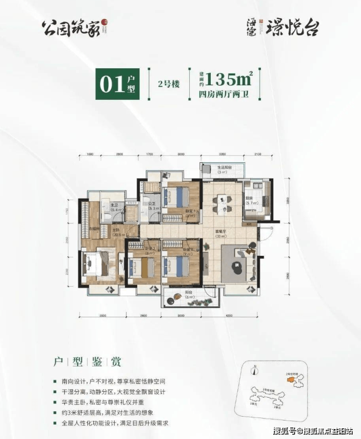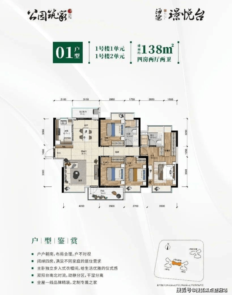 两梯四户,户户朝南,户型通透,从建筑结构设计的根本上保证户户通风采光。3米层高不压抑,更高空间,更加健康。