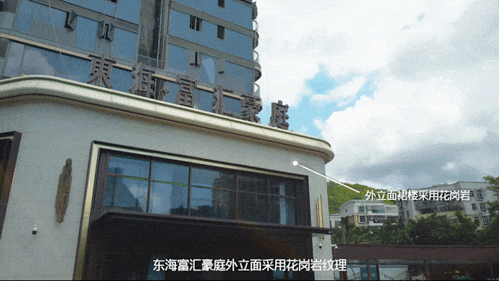东海富汇豪庭高端的品质感,从第一眼就能感受出来。外立面彰显出不一般的品味,裙楼采用花岗岩石材,塔楼外立面采用德国的“rotoi”系统门窗+组合式单元窗,双系统设计,结合铝板装饰线条,再以高端公共建筑设计手法加持,打造出浑然一体的类幕墙现代建筑立面效果,在夜景灯光系统下,整个建筑熠熠生辉。