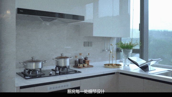 厨房每一处细节设计都是从居住者的需求出发,配备国内外知名品牌加持,每天进出厨房都是满满的尊贵感。