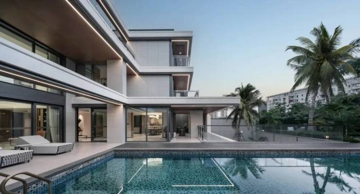 社区配套:宝格丽风格美学生活馆(含私宴厅、SPA、品酒区、商务会议室),业主食堂、健身中心,园林以热带风情为主,私密感强;