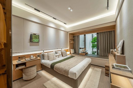 园林采用新宋式风格,打造“六进归家礼制”,架空层设有四大泛会所(阅读室、茶室、花房、健身房),提升居住品质。