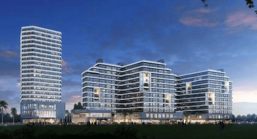 建筑特色:建筑充满流动性、延续性的曲线,链接人与时间、自然,沟通海平线。商业楼外观采用层层退台设计,形成立体绿化体系,将自然与生态和商业业态巧妙嫁接。