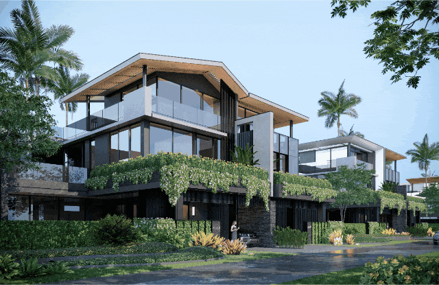 海南满天星旅业开发有限公司作为项目开发商,背后依托新湖中宝控股,其实控方浙江新湖集团实力雄厚。在建筑规划上,园区建筑巧妙依约 60 米自然地势高差而建,每一席墅品都能或傍山而居,聆听山林的低语;或观湖赏景,沉醉于湖光山色;或瞰海远眺,感受大海的磅礴。190 席纯山地别墅,包括双拼与独栋两种类型,宛如自然生长于山间的艺术品,与山体、绿地完美融合,天然溪流、叠瀑、小径穿插其中,与热带景观相互映衬,勾勒出一幅如诗如画的山居美景图。