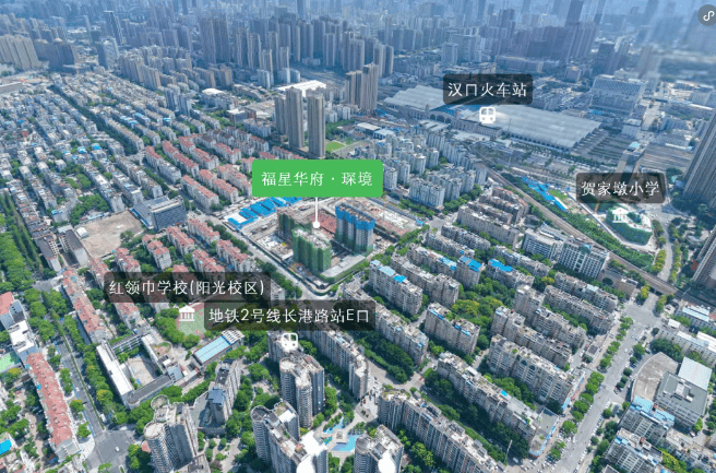 教育配套:直线 3km 范围内有 107 个幼儿园、24 个小学和 16 个中学,如红领巾学校阳光校区、武汉市第一中学等。项目正对面是红领巾学校阳光校区,其对口初中为武汉市第一初级中学金雅校区。