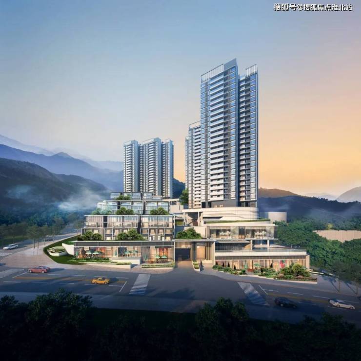 鹏瑞·半山院子外立面从梧桐山的轮廓与灵气中汲取灵感,通过质感涂料、高品质铝板以及大面积玻璃幕墙进行组合,把景观面做到了极致,远远望去,结合重重台地景观,营造出“远山如黛”的朦胧意境。