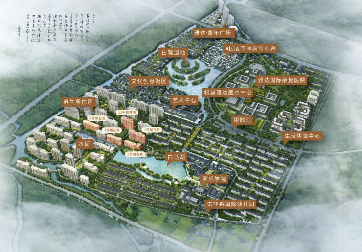 小区规划:作为乌镇国际旅游区的重要组成部分,规划有养生居住区、颐乐学院、养老示范区、医疗公园、特色商业区和度假酒店区六大板块。