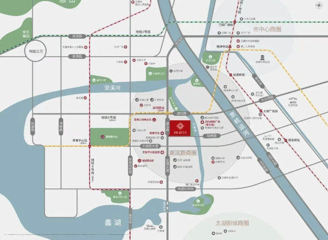 交通配套:周边规划有地铁 5 号线,紧邻湖滨路、建筑路、太湖大道、红星路、青祁路等城市交通主干道,公交方面有多条公交线路覆盖,如 1 路、11 路、36 路等,可直达无锡市各大商圈和重要地点。