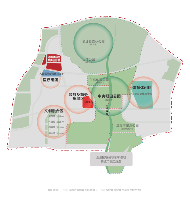 当三亚传统滨海土地开发日益饱和,城市目光开始向内生长。依托“一心两翼”的发展宏图,约600亿的巨擘投资加持之下,抱坡新城不仅是政务中心所在的“首善之地”,更汇聚全方位的配套资源,从国际体育中心,到文化馆、博物馆、中央稻田公园、三亚高铁站、市人民医院新院区……行政、文体、教育、医疗等多方面铺陈,一个全维度生活圈正在加速兑现。