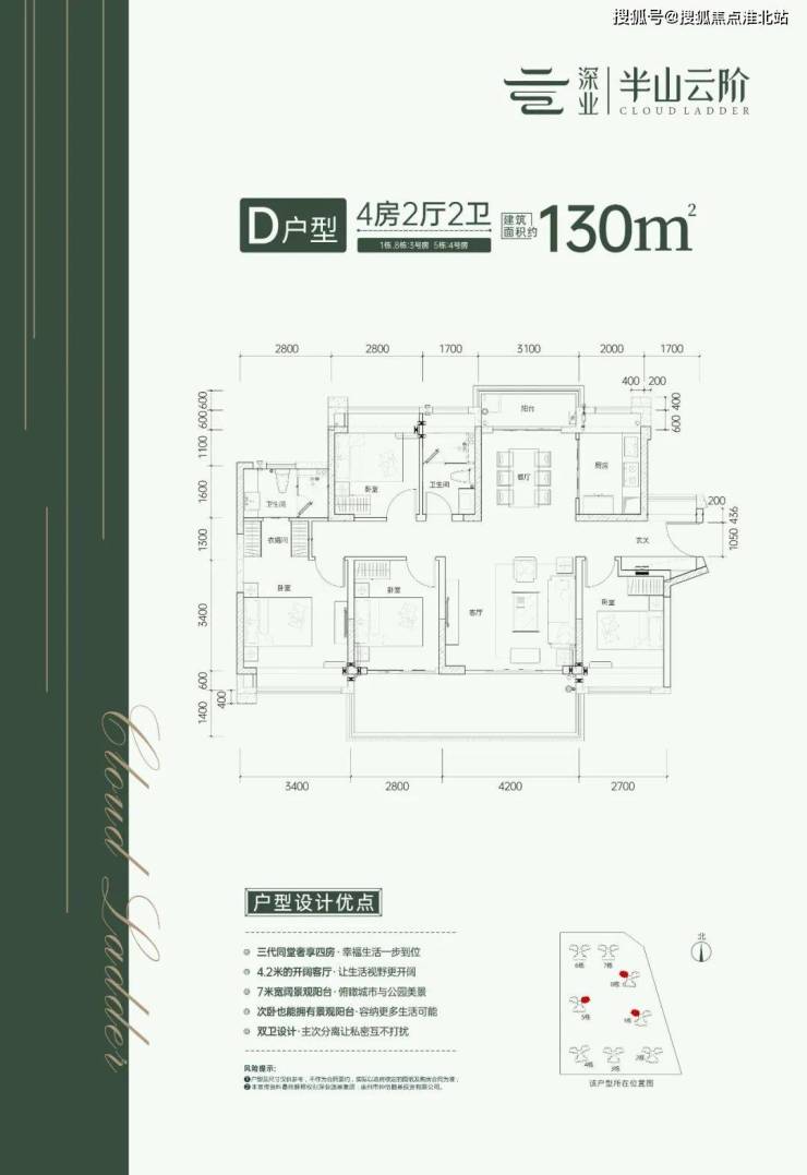 3种户型,建面:97-130㎡ 4室2厅2卫 (建面:130)