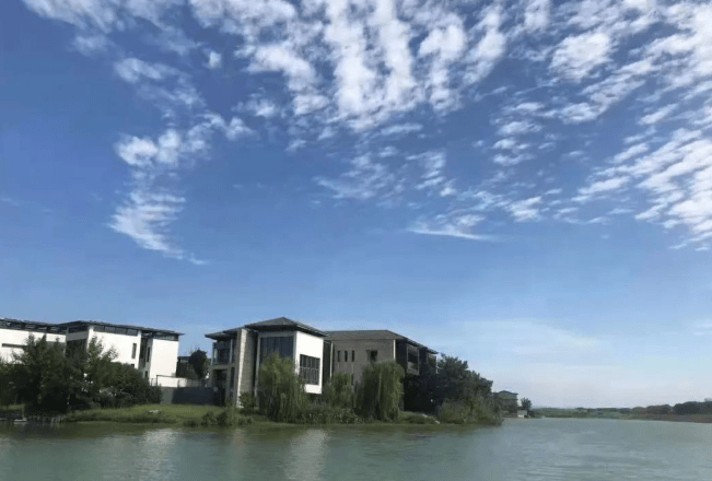 项目紧邻太湖,出于环境保护的考虑,靠太湖沿线退让 80 米,形成特大宽度的水道和自然景观带,连同 516 亩的湿地公园,大大提升了项目的居住品质,降低了建筑密度。